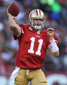 If the 49ers make the playoffs this season, Alex Smith will not be the main reason for that. Unless he has a stellar second half of the season, the defense will be the force that drives the 49ers to the playoffs. This season, Alex Smith was placed in the absolute best possible situation to succeed. Jim Harbaugh not only was a quarterback in the NFL for 15 seasons, but he also has proven to be a “players coach,” which means that he gets along with players easily while still commanding respect and authority. Harbaugh has coached some great quarterbacks, and he knows how to get the best out of all his players. Because of all these qualities, Alex Smith should be playing the best football of his life. Yes, Alex Smith has had seven different offensive coordinators in his NFL career. However, if he was good enough to be chosen with the #1 overall pick in 2005, he should be able to adapt. Seven different offensive coordinators requires a lot of adaptation, but he should have been able to rise to the occasion and at least begin to establish himself after his first few years in the league. After seven seasons, we are currently seeing the closest to the best form of Alex Smith we are ever going to see. With an outstanding coach practically tailored specifically for him, with solid teammates around him such as Vernon Davis, Michael Crabtree, and Frank Gore, and with a defense fully supporting him, Alex Smith should have extremely strong stats.