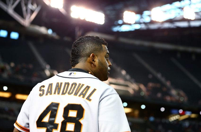 Sep 17, 2014; Phoenix, AZ, USA; San Francisco Giants third baseman Pablo Sandoval against the Arizona Diamondbacks at Chase Field. The Giants defeated the Diamondbacks 4-2. Mandatory Credit: Mark J. Rebilas-USA TODAY Sports