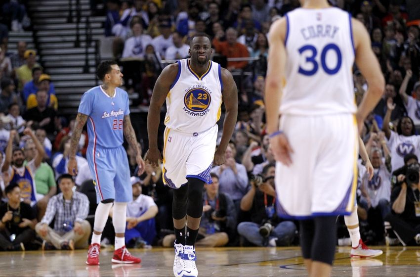 Mar 8, 2015; Oakland, CA, USA; Golden State Warriors forward Draymond Green (23) reacts after recording an assist against the Los Angeles Clippers in the second quarter at Oracle Arena. Mandatory Credit: Cary Edmondson-USA TODAY Sports