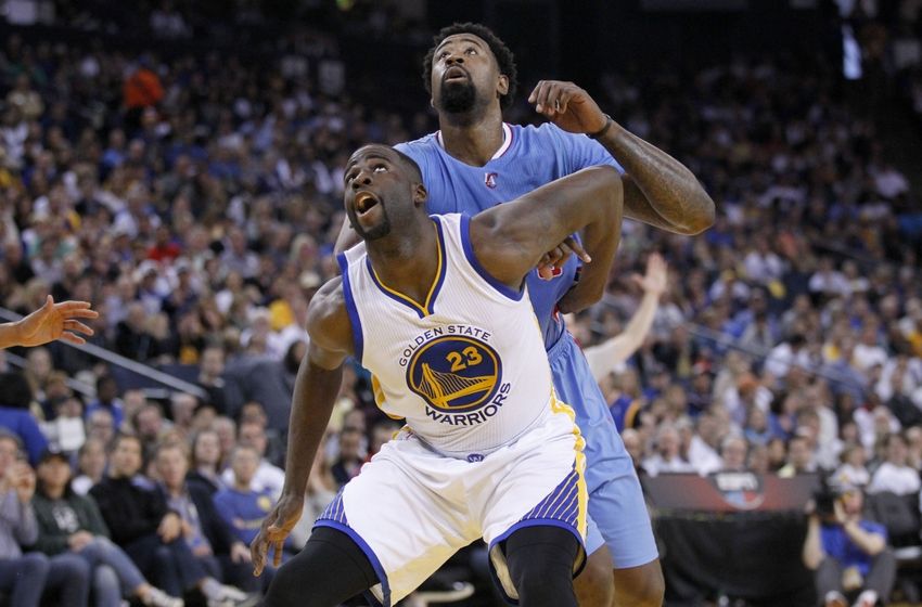Mar 8, 2015; Oakland, CA, USA; Golden State Warriors forward Draymond Green (23) boxes out Los Angeles Clippers center DeAndre Jordan (6) in the second quarter at Oracle Arena. Mandatory Credit: Cary Edmondson-USA TODAY Sports